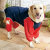 前足が脱げない状態で、後ろ足を入れる構造。もし愛犬が着用中にジタバタ動いてしまっても、足が抜けず着せやすいよう考えられています。後ろ足のズボン箇所も、後ろ足の関節の動きに合わせて、無理なく入れられるようになっています。