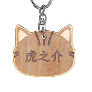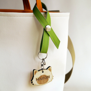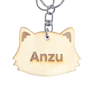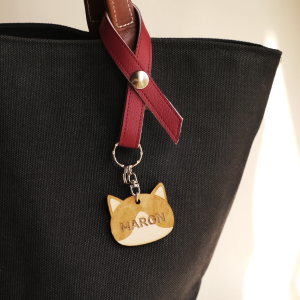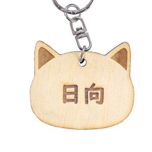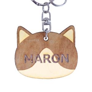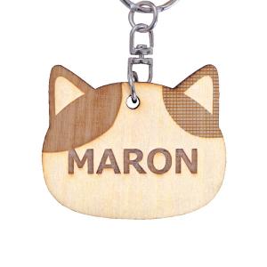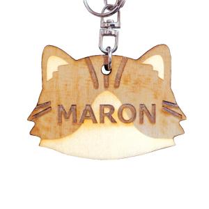 木のぬくもりがある猫ちゃんの顔型チャームに愛猫の名前を刻印できます。
