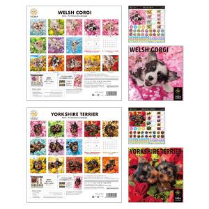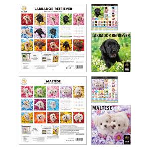 犬種別に選べる月めくりカレンダー。 子犬のあどけない表情と華やかなお花に癒されます。 カレンダーにも貼って使えるオリジナルシール付き。