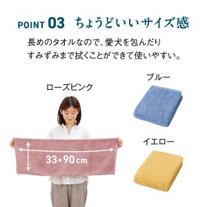抜群の吸水力で、ドライヤーの前に濡れた被毛の水分をタオルで拭き取っておくことで愛犬の負担を軽減する「タオルドライ」に最適です。