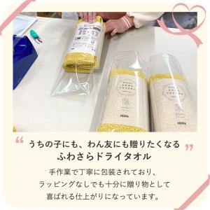 「うちの子の肌に優しいものを使いたい」というお声から誕生したふんわり、やわらかな綿100%ドライタオル。