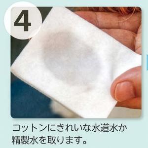 ② まぶたの手術時に、マイボーム腺圧迫鑷子でマイバムを圧出後、マイボシャンプーで清拭+水道水で湿らせた脱脂綿で清拭を行なっております。